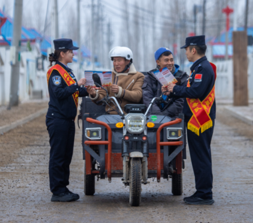 該派出所民警古麗則熱·艾買提江圍著紅圍巾出鏡,她站在警車旁,舉著“平安到家才是最好的年貨”標(biāo)語,讓反酒駕宣傳既嚴(yán)肅又溫情。