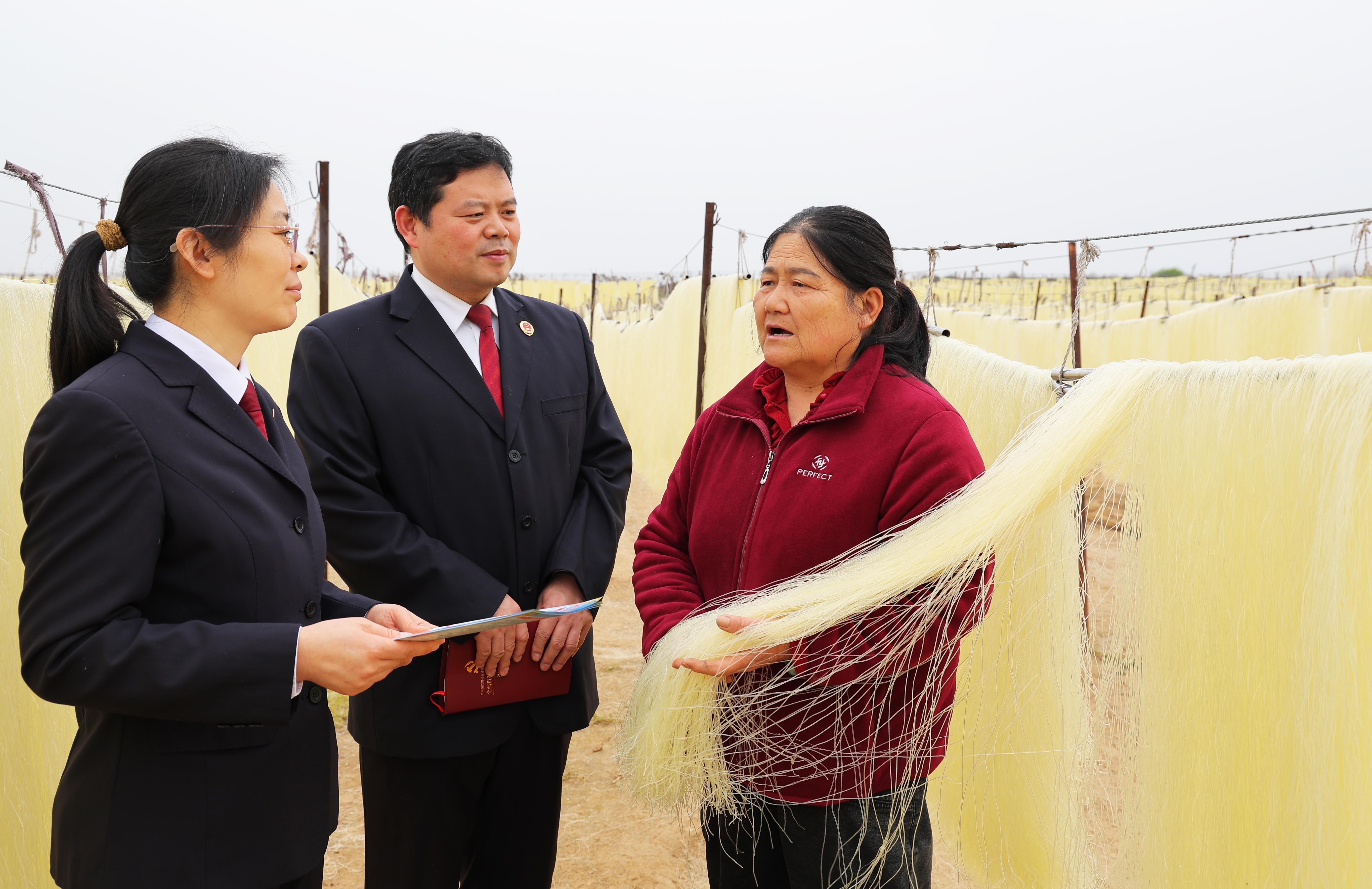 圖為3月23日,該院干警深入紅薯粉條生產(chǎn)廠家,征求對農(nóng)特產(chǎn)品的司法保護(hù)建議。