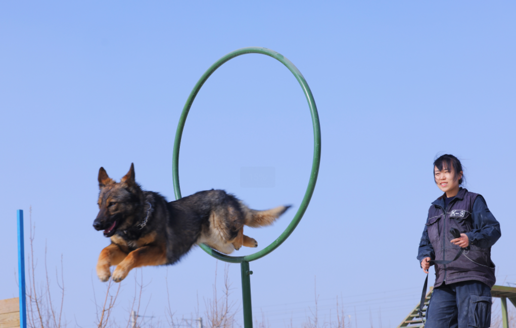 圖為郭雪晨正在對(duì)警犬開展“全科目、精細(xì)化”針對(duì)性訓(xùn)練。