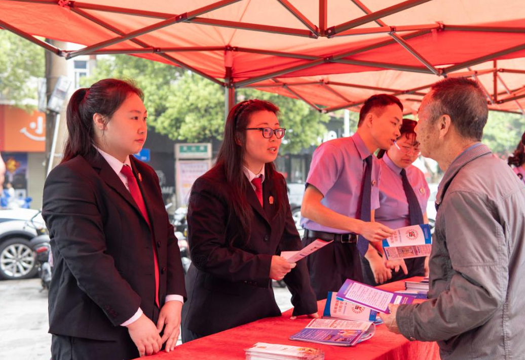 圖為吉安縣人民法院法官向群眾普及國(guó)家安全知識(shí)。