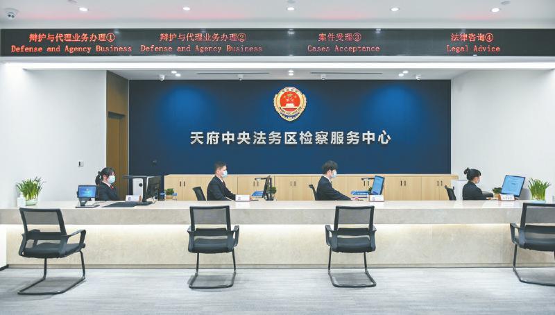 在天府中央法務區(qū)警務服務中心,共有公安出入境事務服務中心、天府知識產權保護促進中心、中國西部公共安全產品評估服務中心、“天府杯”國際網絡安全大賽聯絡辦公室4個項目首批入駐。