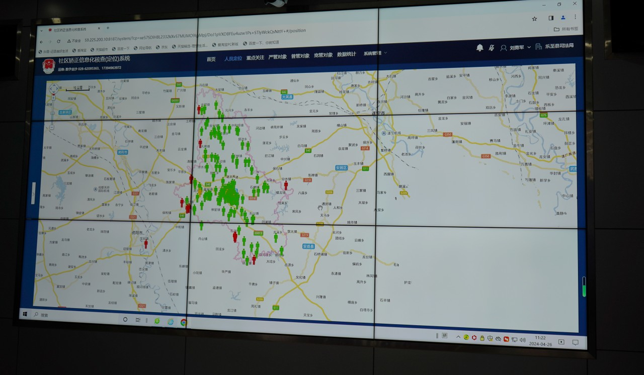 4月26日,記者來到樂至縣社區(qū)矯正中心,全縣331名社區(qū)矯正對象的動態(tài)信息在屏幕上一目了然,只需登錄社區(qū)矯正一體化平臺,工作人員就能對全縣社區(qū)矯正對象的情況進(jìn)行分析研判。