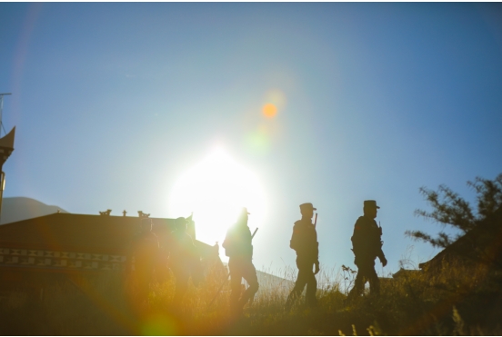 在朝夕相處平均年齡27歲的50名特巡警戰(zhàn)友眼里,軍人出身、嚴(yán)以律己、彈無(wú)虛發(fā)、關(guān)愛(ài)有加的他如同好阿哥和師父般的存在?!案揖殹薄案腋伞薄案疑稀笔撬目陬^禪,深深烙印在所摯愛(ài)的特戰(zhàn)歲月,更帶出了獨(dú)樹(shù)一幟的隊(duì)伍,創(chuàng)造了與海拔同等高度的新業(yè)績(jī)。2022年,在黨的二十大安保維穩(wěn)工作中,特巡警大隊(duì)不負(fù)眾望被榮記集體二等功,并有13名隊(duì)員先后立功受獎(jiǎng);他和戰(zhàn)友們的榮光故事遠(yuǎn)不止于此,2022年10月,省公安廳紅藍(lán)對(duì)抗演練抽到爐霍縣公安局,由特巡警大隊(duì)負(fù)責(zé)擔(dān)負(fù)此項(xiàng)演練任務(wù)。視其訓(xùn)練有素、戰(zhàn)術(shù)得當(dāng)、處置高效,2023年10月省廳戰(zhàn)訓(xùn)基地還將其作為成功處置經(jīng)典案例,在全省學(xué)員中進(jìn)行播放教學(xué)。