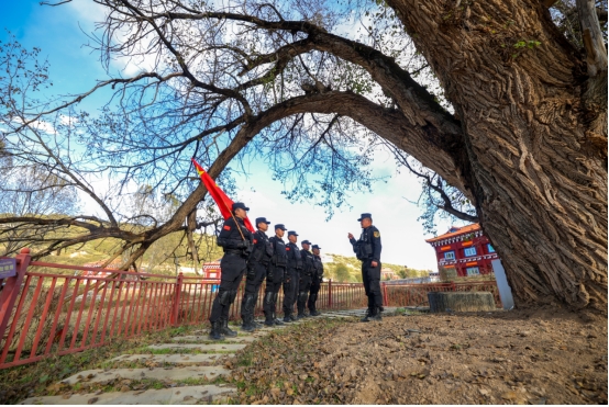 家鄉(xiāng)在千里之外的山東,妻兒又在康定生活的他,常年以霍爾廣場(chǎng)警務(wù)室為家,醉心于特巡警工作,深耕于打防管治,以召之即來(lái)之勢(shì)給予群眾看得見(jiàn)的滿滿安全感。2016年,楊進(jìn)前原本通過(guò)了省公安廳組織的警務(wù)技能實(shí)戰(zhàn)教官選拔,但眷戀第二故鄉(xiāng)爐霍的一草一木,主動(dòng)放棄了在省廳戰(zhàn)訓(xùn)基地工作的機(jī)會(huì),選擇了在革命老區(qū)縣披星戴月的執(zhí)著堅(jiān)守,傾情守護(hù)街頭小巷的“人間煙火氣”,更換來(lái)“霍爾章古”的安然入睡和繁花遍地。