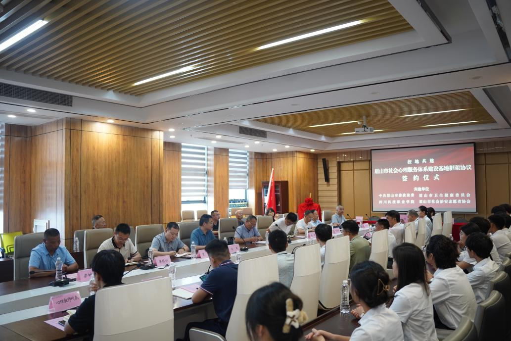 簽約儀式上,眉山市委政法委、市衛(wèi)生健康委、四川科技職業(yè)學院、市社會治安志愿者協(xié)會分別就進一步推動眉山市社會心理服務體系建設進行發(fā)言,共同簽署《共建眉山市社會心理服務體系建設基地框架協(xié)議》,并為四川科技職業(yè)學院“校地共建單位”揭牌和眉山市心理健康知識宣傳志愿服務隊授牌、授旗。