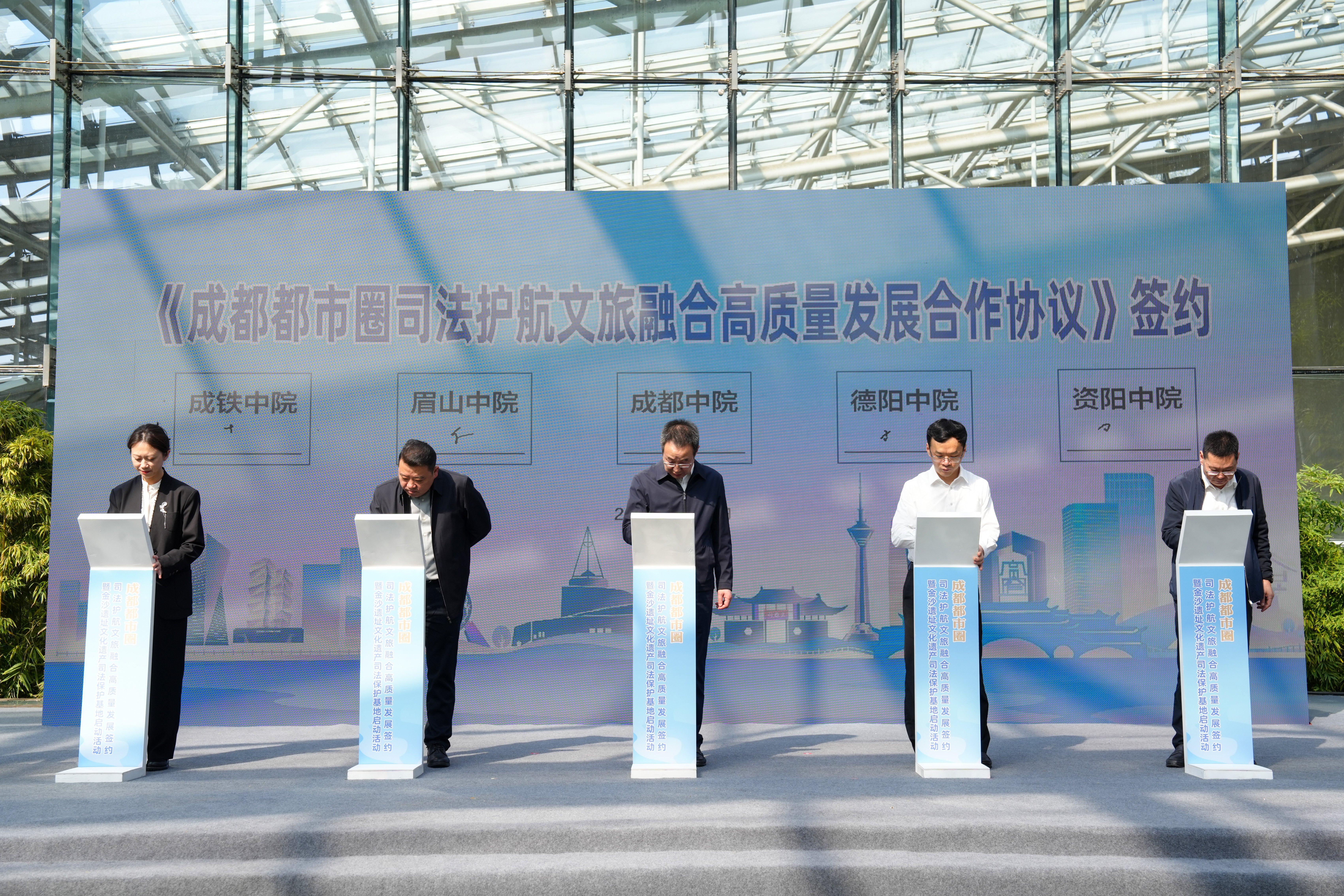 據(jù)了解,2020年4月,成都、德陽(yáng)、眉山、資陽(yáng)中院共同簽署了《為成德眉資同城化發(fā)展提供高質(zhì)量司法服務(wù)保障的合作框架協(xié)議》,開(kāi)啟了攜手服務(wù)同城化發(fā)展的司法實(shí)踐。此次成德眉資及成鐵法院再次深化合作,進(jìn)一步聚焦成都都市圈文旅融合高質(zhì)量發(fā)展,在共同提升司法服務(wù)供給水平、一體推進(jìn)跨域生態(tài)環(huán)境資源司法保護(hù)、服務(wù)本土文化資源恢復(fù)保護(hù)和融合發(fā)展、合力維護(hù)都市圈文旅品牌和市場(chǎng)環(huán)境等四個(gè)方面將通力合作,謀劃了涉文旅糾紛多元化解、加強(qiáng)知識(shí)產(chǎn)權(quán)保護(hù)、維護(hù)旅游者合法權(quán)益等十項(xiàng)務(wù)實(shí)舉措,更大力度提升文旅融合發(fā)展方面的司法服務(wù)保障實(shí)效。