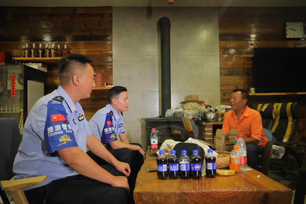 “歇歇腳、暖暖身,帶著溫度再出發(fā)!”這是“平安驛站”的溫情口號,正傳唱于千年古碉之下。去年8月8日下午,扎西鄧珠在現(xiàn)場處理重慶游客王先生因購物與當(dāng)?shù)厝罕姲l(fā)生糾紛時得知,王先生一行13人到景區(qū)后忙于拍照與購?fù)撂禺a(chǎn)還沒找到就餐地方,特別是5名小孩已經(jīng)饑餓難耐,便把他們請到“平安驛站”,免費為他們提供食物和飲水。王先生一行人紛紛舉起手機記錄這次“意外之旅”,并讓5名小孩與民警合影留念。