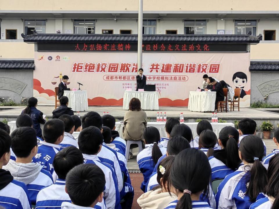在德源中學(xué),一場別開生面的“模擬法庭”活動正在莊嚴(yán)地進(jìn)行,庭審中,15名青少年化身審判員、書記員、公訴人、辯護(hù)人、法警等角色,共同參與審理一起校園欺凌案件,活動通過還原庭審過程,讓師生們“沉浸式”感受法律威嚴(yán)?;顒又?,德源司法所的工作人員還為同學(xué)們送上憨態(tài)可掬的“法治熊貓”。