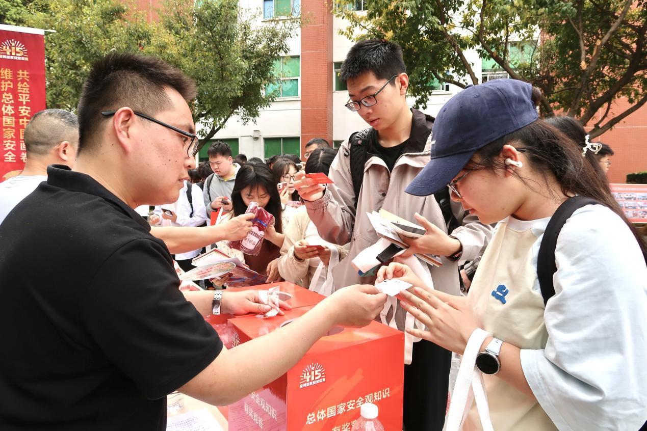 4月14日,在西華大學校園內(nèi),擺放的普法主題展板吸引同學們駐足學習,這些展板通過圖文并茂的形式呈現(xiàn)了國家安全領(lǐng)域、典型案例等豐富內(nèi)容。學校禮堂內(nèi),郫都區(qū)委黨校的孫建國老師以“貫徹總體國家安全觀”為主題向300余名師生闡述了總體國家安全觀的核心要義。郫都區(qū)多部門在現(xiàn)場設置宣傳展位,向師生們發(fā)放國家安全等宣傳手冊,并提供相關(guān)法律咨詢。