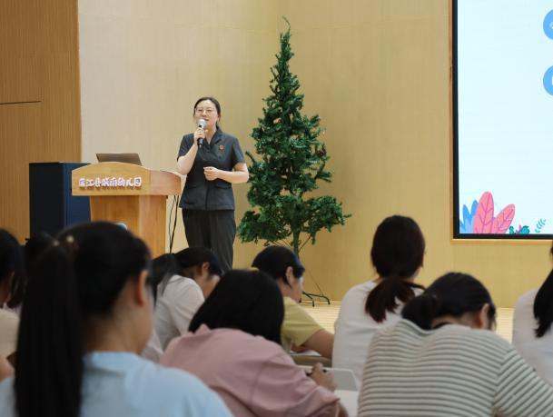 在蒲江縣城南幼兒園,“豌豆莢·五老護(hù)幼”法治宣講團(tuán)講師、法治校長鐘珊圍繞新修訂的學(xué)前教育法,以“依法共育,守護(hù)童真”為主題開展法治講座。