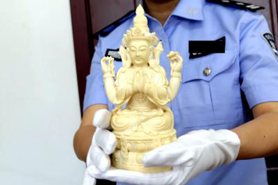 法制網(wǎng)訊 記者蔡巖紅 大連海關(guān)6月21日透露,該關(guān)緝私局立案?jìng)赊k一起涉嫌走私象牙及其制品案件,當(dāng)場(chǎng)查扣象牙及其制品共計(jì)109件,重約5164克,其中包含象牙2根、大型象牙雕件1件、小型象牙制品及散碎料若干。