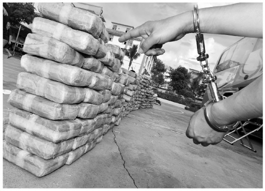 6月7日,云南西雙版納邊境管理支隊(duì)破獲一起特大運(yùn)輸毒品案,在一輛大巴車上查獲毒品可疑物139.774公斤。圖為嫌疑人指認(rèn)所運(yùn)輸?shù)亩酒房梢晌铩7ㄖ迫請(qǐng)?bào)記者 石飛法制網(wǎng)通訊員 韋立鵬 攝