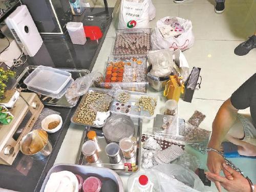 陳某從網(wǎng)上購得打粉機、發(fā)酵箱、電子秤等設備,并四處搜羅大量中藥材,在家里搞起了“研發(fā)”。打粉、攪拌、搓條、發(fā)酵、烘干……成色差、不成型、味道怪,炮制藥品工序煩瑣、失敗率高,但在巨大經(jīng)濟利益的誘惑下,陳某硬是搗鼓出了成品。因為“吃著沒什么副作用”,陳某便心安理得地繼續(xù)生產(chǎn)。