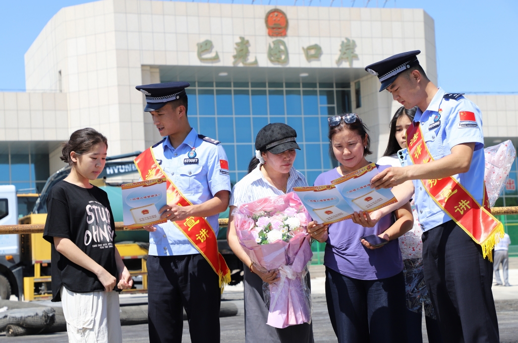 7月9日,新疆出入境邊防檢查站總站巴克圖出入境邊防檢查站執(zhí)勤民警深入國(guó)門口岸,開展《中華人民共和國(guó)出境入境管理法》普法宣傳活動(dòng)。其間,執(zhí)勤民警在口岸旅檢大廳、限定區(qū)域等地,通過發(fā)放宣傳冊(cè)、法律解讀、現(xiàn)場(chǎng)答疑等形式,向出入境旅客普及法律知識(shí),提升出入境旅客的守法意識(shí),為口岸安全穩(wěn)定筑牢法治根基和安全屏障。