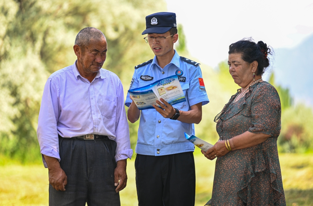 7月9日,新疆出入境邊防檢查總站克州邊境管理支隊(duì)膘爾托考依邊境派出所民警走進(jìn)轄區(qū)、村社,開展反詐宣傳活動(dòng)。民警為居民發(fā)放防范電信網(wǎng)絡(luò)詐騙宣傳手冊(cè)等反詐宣傳資料,從多角度向居民分析電信網(wǎng)絡(luò)詐騙的特點(diǎn)、種類、危害性及防范技巧,進(jìn)一步提升轄區(qū)群眾的自我防護(hù)意識(shí)。
