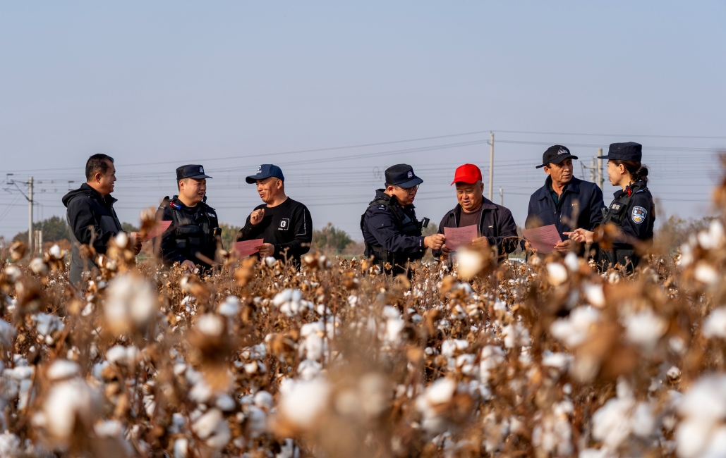 正值新疆棉花豐收季,10月21日,烏魯木齊鐵路公安處呼圖壁站派出所組織民警深入轄區(qū)棉花地與軋花場(chǎng)向棉農(nóng)宣傳愛路護(hù)路及消防安全知識(shí),筑牢棉區(qū)安全防線。