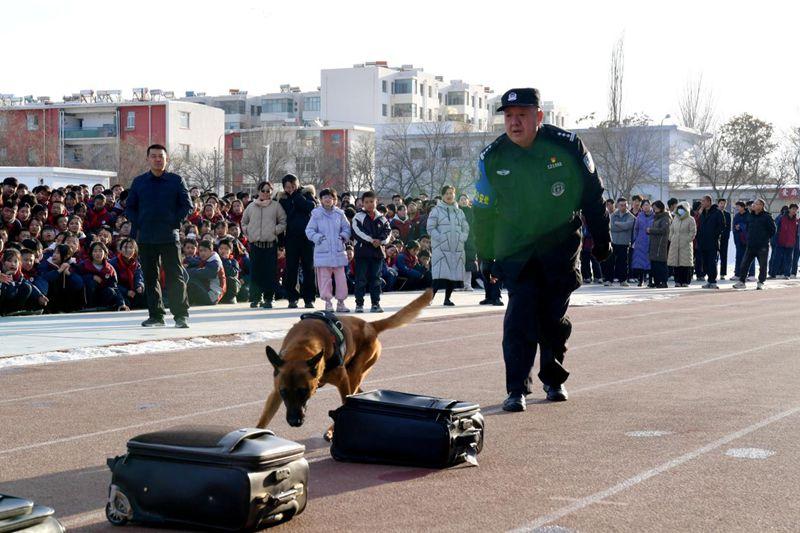 另一邊,警犬演示區(qū)域同樣人氣爆棚。訓(xùn)導(dǎo)員帶著訓(xùn)練有素的警犬登場(chǎng),瞬間吸引了全體師生的目光。在訓(xùn)導(dǎo)員的指令下,警犬依次展示了服從指令、搜爆排查等科目,動(dòng)作迅猛精準(zhǔn)、配合默契無(wú)間。演示過(guò)程中,訓(xùn)導(dǎo)員還向同學(xué)們講解了警犬的品種、訓(xùn)練日常,不少同學(xué)主動(dòng)提問(wèn),近距離觀察警犬,感受人與犬之間的默契與堅(jiān)守,現(xiàn)場(chǎng)掌聲此起彼伏。