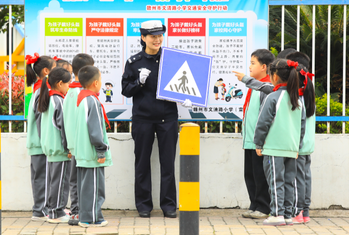 在第31個(gè)全國(guó)中小學(xué)生安全教育日來臨之際,江西省贛州市公安局交管支隊(duì)章貢大隊(duì)組織民警深入轄區(qū)校園,通過以案釋法、實(shí)景講解、互動(dòng)問答等方式,向同學(xué)們宣傳交通安全法律法規(guī),切實(shí)提升中小學(xué)生交通安全意識(shí)與自我防護(hù)能力。