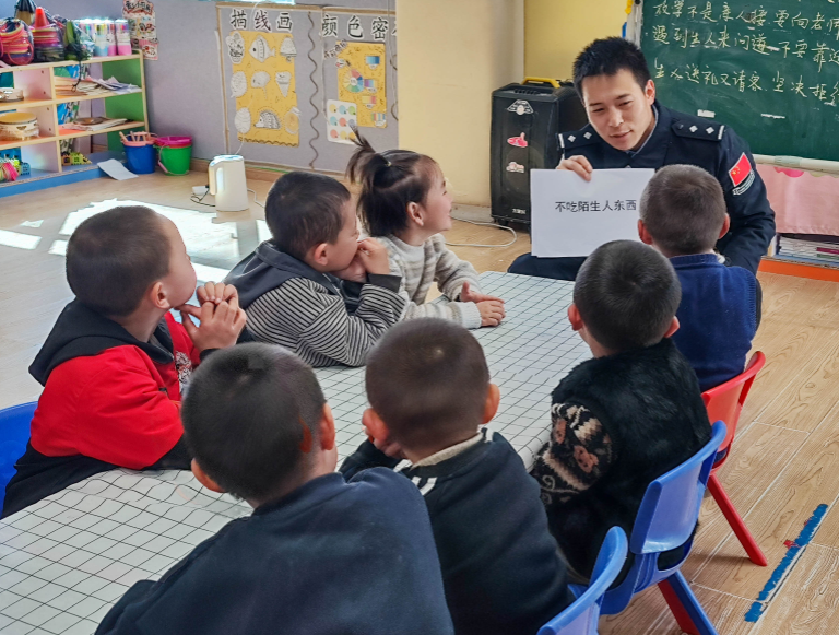 3月27日,新疆出入境邊防檢查總站克州邊境管理支隊黑牙克恰提邊境派出所民警走進轄區(qū)幼兒園,開展防拐防騙知識宣講。在課堂上,民警以朗朗上口的防拐、防騙兒歌調(diào)動孩子們的積極性,幫助孩子們提高自我防護意識。