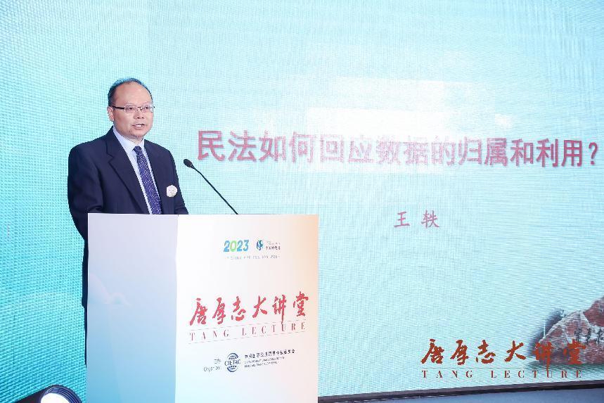 中國人民大學副校長、貿(mào)仲仲裁員王軼以“民法如何回應數(shù)據(jù)的歸屬和利用”為題開展主旨演講。他介紹了數(shù)據(jù)的含義和性質(zhì),援引民法典闡釋了民法上數(shù)據(jù)的內(nèi)涵與外延,剖析了數(shù)據(jù)承載的人身利益、財產(chǎn)利益和民法回應的難題,重點分享了他在數(shù)據(jù)承載利益分配問題上的真知灼見。他表示,建構數(shù)據(jù)基礎法律制度是法學界的使命,數(shù)據(jù)立法過程中要注意立法權、執(zhí)法權和司法權的配置。