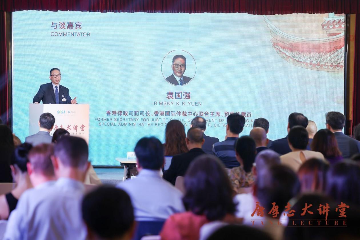 隨后,香港律政司前司長袁國強作為與談人發(fā)言。他從微觀和宏觀兩個視角對王軼教授的演講進行了回應。在微觀上,他提出在數(shù)據(jù)屬性、數(shù)據(jù)利益的分配以及涉數(shù)據(jù)問題的法律規(guī)范類型等問題上,尚待進一步研究;在宏觀上,數(shù)據(jù)和先進科技的關系也值得深思,亟需研究科技將如何影響爭議解決進而影響公正。