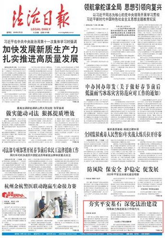 近日,《法治日報》記者從河南省委政法委了解到,2023年,河南夯實平安基石,深化法治建設,奮力推進政法工作現(xiàn)代化,全力以赴防風險、保安全、護穩(wěn)定、促發(fā)展,平安河南、法治河南建設取得新成效,社會大局持續(xù)保持安全穩(wěn)定。