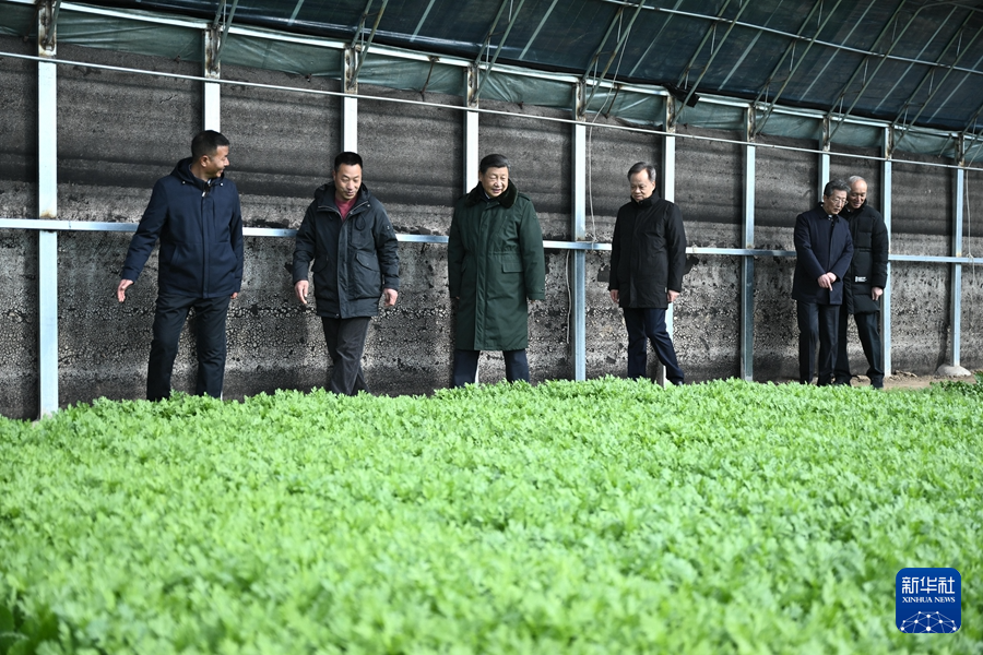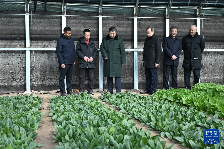 2月1日至2日,中共中央總書(shū)記、國(guó)家主席、中央軍委主席習(xí)近平來(lái)到天津,看望慰問(wèn)基層干部群眾。這是1日上午,習(xí)近平在西青區(qū)辛口鎮(zhèn)第六埠村實(shí)地察看去年洪澇災(zāi)害后當(dāng)?shù)剞r(nóng)業(yè)生產(chǎn)恢復(fù)等情況時(shí),走進(jìn)大棚看蔬菜長(zhǎng)勢(shì)。新華社記者 燕雁 攝