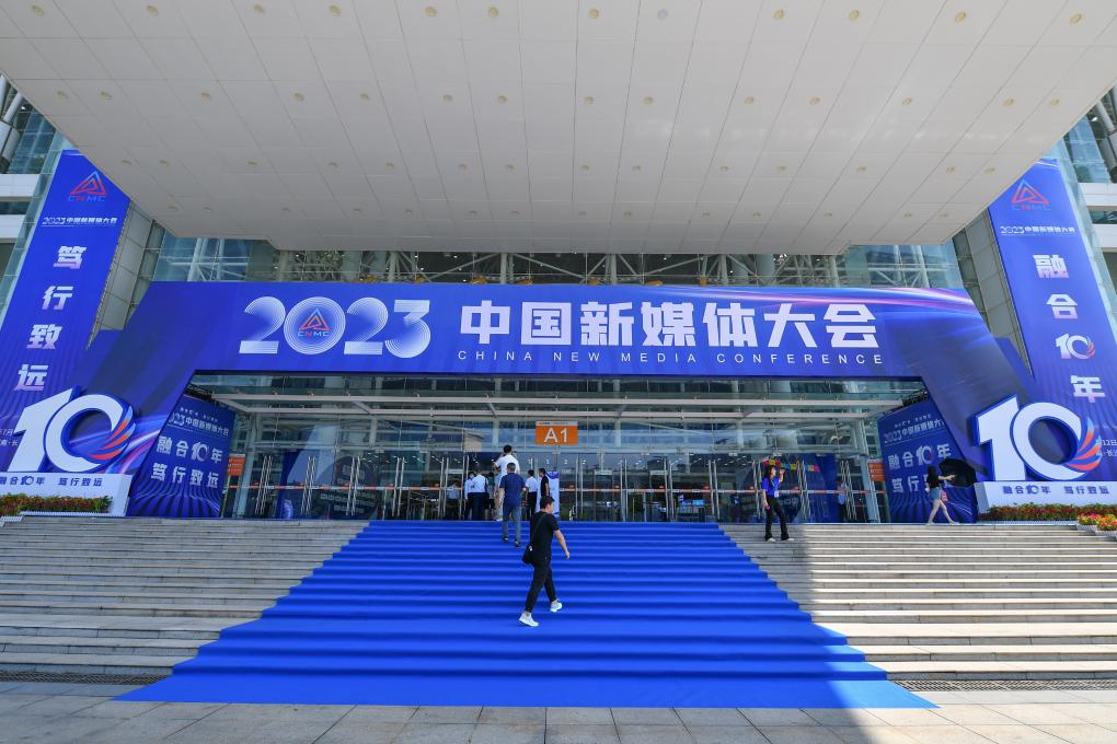 這是2023年7月12日拍攝的2023中國新媒體大會中國新媒體技術(shù)展外景。新華社記者 陳澤國 攝