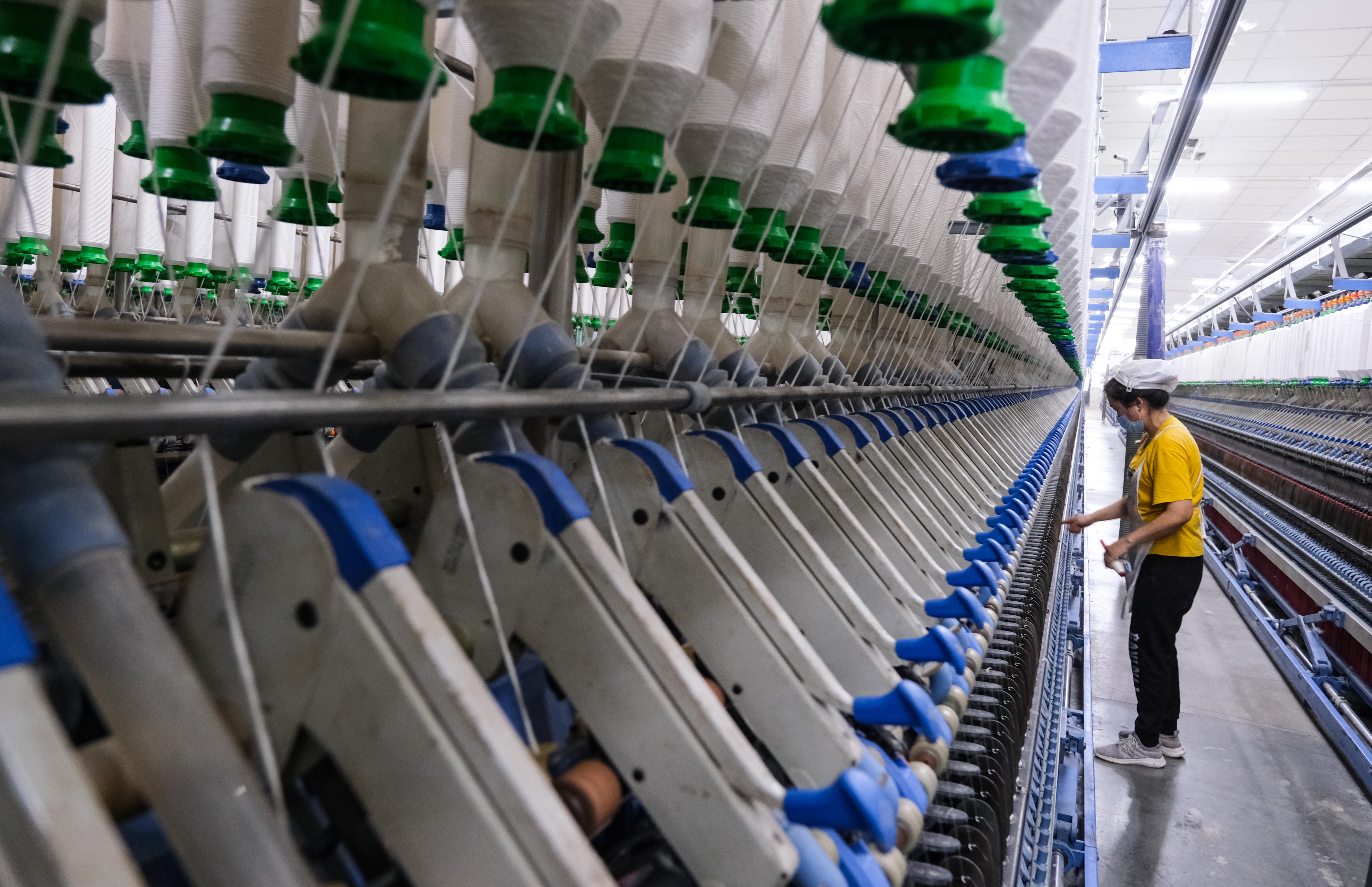 華芳(五河)紡織有限公司是五河縣經(jīng)濟開發(fā)區(qū)城南工業(yè)園棉紡產(chǎn)業(yè)集群的支柱企業(yè)。圖為現(xiàn)代化生產(chǎn)車間。