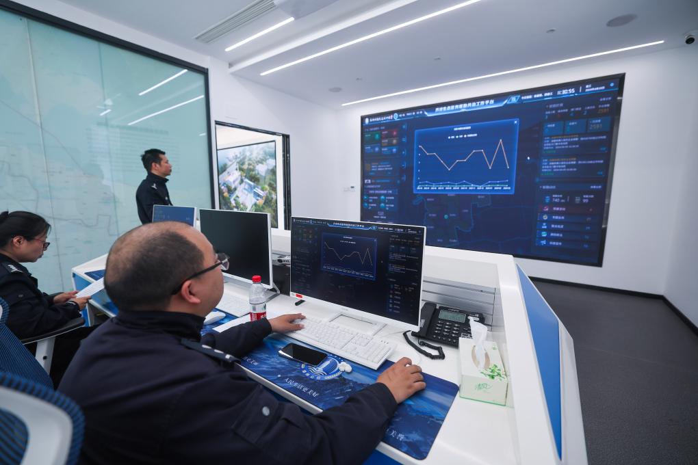 在位于浙江湖州的喬溇生態(tài)警務(wù)聯(lián)勤共治工作站里,值班民警通過(guò)智能化監(jiān)控平臺(tái)對(duì)太湖水質(zhì)環(huán)境進(jìn)行實(shí)時(shí)監(jiān)測(cè)。新華社記者徐昱 攝