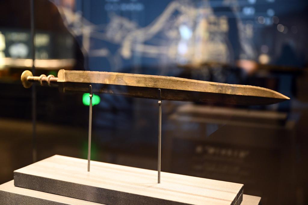 戰(zhàn)國(guó)時(shí)代,七雄爭(zhēng)霸的號(hào)角聲聲不絕。展廳正中,鎮(zhèn)館之寶“越王者旨于賜劍”就是這一時(shí)期合縱連橫的見證。
