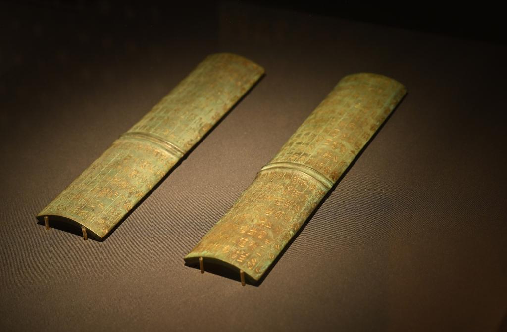壽縣邱家花園出土的鄂君啟金節(jié)(復(fù)制品),原件現(xiàn)收藏于中國(guó)國(guó)家博物館和安徽博物院。新華社記者 周牧 攝