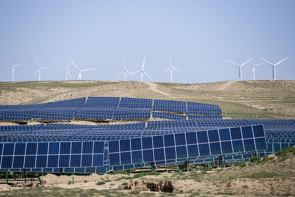 寧夏靈武,國能寧東200萬千瓦復合光伏基地,370多萬塊光伏板沿著廣袤荒灘起伏,在午后驕陽下泛起“粼粼波光”,不斷向浙江等地輸送綠電。