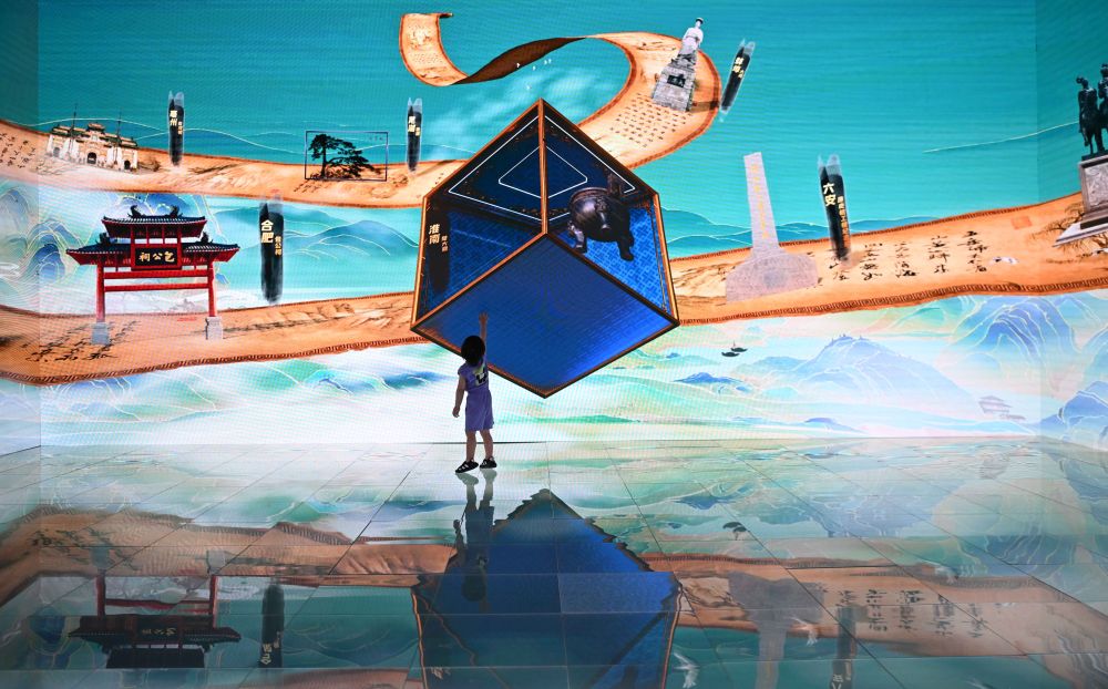 2024年5月24日,小朋友在第二十屆中國(深圳)國際文化產(chǎn)業(yè)博覽交易會科大訊飛展臺體驗3D奇幻空間。新華社記者 鄧華 攝