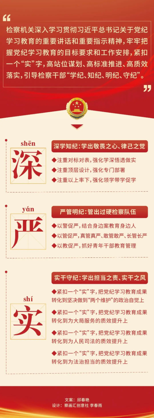 答案在行動中揭曉——最高檢深入學(xué)習(xí)貫徹習(xí)近平總書記關(guān)于黨紀學(xué)習(xí)教育的重要講話和重要指示精神,牢牢把握黨紀學(xué)習(xí)教育的目標要求和工作安排,緊扣一個“實”字,高站位謀劃、高標準推進、高質(zhì)效落實,引導(dǎo)檢察干部“學(xué)紀、知紀、明紀、守紀”,形成了部署及時、融入日常、助推工作的良好形勢。與此同時,指導(dǎo)地方各級檢察院把黨紀學(xué)習(xí)教育抓實抓細,以黨紀學(xué)習(xí)教育促進提升檢察工作質(zhì)效。