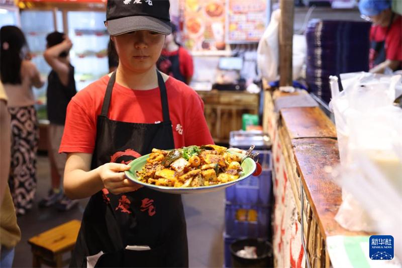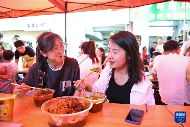 7月22日,顧客在甘肅天水市名優(yōu)小吃城品嘗麻辣燙?!⌒氯A社記者 呂帥 攝