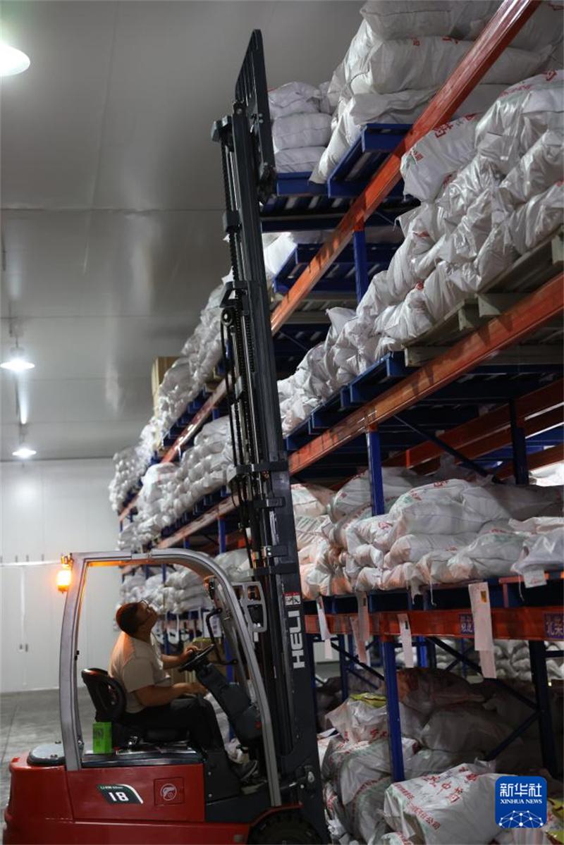 7月23日,工作人員在甘肅隴西縣的一家藥材公司的庫房運(yùn)輸藥材。 新華社記者 呂帥 攝