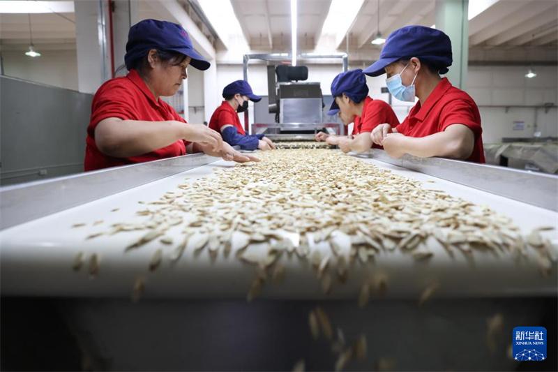 7月23日,工作人員在甘肅隴西縣的一家藥材公司的車間加工藥材?!⌒氯A社記者 呂帥 攝
