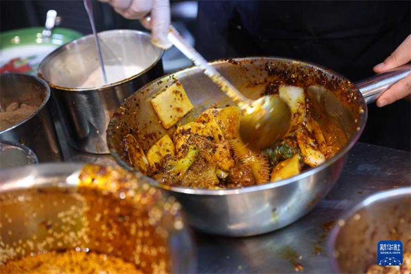 7月22日,工作人員在甘肅天水古城的一家麻辣燙店里制作麻辣燙?!⌒氯A社記者 呂帥 攝
