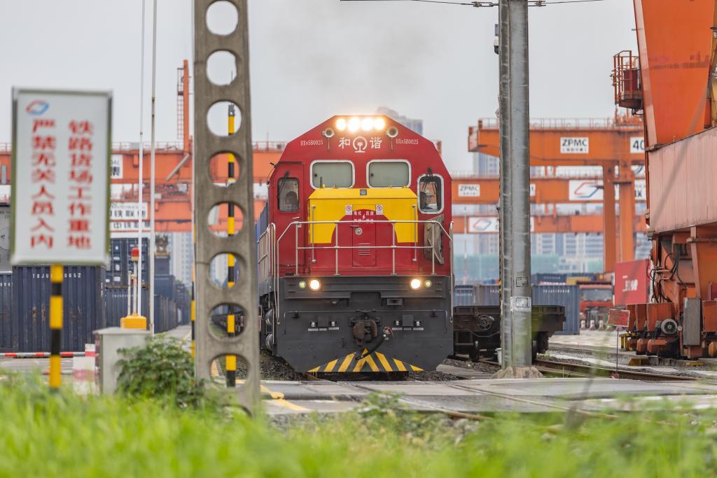 7月30日,在重慶國際物流樞紐園區(qū),一列裝載機(jī)械設(shè)備、汽車和筆記本電腦的中歐班列從重慶團(tuán)結(jié)村中心站駛出。新華社記者 黃偉 攝