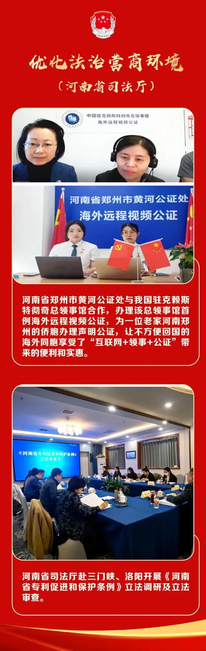 去年以來,我們聚焦發(fā)展新質(zhì)生產(chǎn)力、推進(jìn)中部地區(qū)崛起等中心工作,圍繞河南省委、省政府提出的錨定“兩個確?!薄⒊掷m(xù)實(shí)施“十大戰(zhàn)略”、推進(jìn)“十大建設(shè)”工作部署,不斷優(yōu)化法治化營商環(huán)境,采取了一系列務(wù)實(shí)舉措:聚焦提升領(lǐng)導(dǎo)干部法治意識法治思維、提高依法行政能力水平,出臺《關(guān)于進(jìn)一步加強(qiáng)全面依法治省工作的意見》《河南省領(lǐng)導(dǎo)干部應(yīng)知應(yīng)會黨內(nèi)法規(guī)和國家法律清單》。牽頭制定《河南省營商環(huán)境綜合配套改革法治化專項(xiàng)方案》,部署立法、執(zhí)法、司法、法律服務(wù)、政務(wù)誠信、政務(wù)服務(wù)“六大行動”,明確25項(xiàng)具體任務(wù)。推動出臺《中國(河南)自由貿(mào)易試驗(yàn)區(qū)條例》《鄭州航空港經(jīng)濟(jì)綜合實(shí)驗(yàn)區(qū)條例》,為試(實(shí))驗(yàn)區(qū)賦權(quán)、松綁,激發(fā)各方主體發(fā)展活力;出臺《河南省保障稅收服務(wù)發(fā)展條例》《河南省專精特新企業(yè)培育支持辦法》和省司法廳服務(wù)保障民營經(jīng)濟(jì)發(fā)展10項(xiàng)措施,為中央和河南重大戰(zhàn)略實(shí)施提供法治保障。