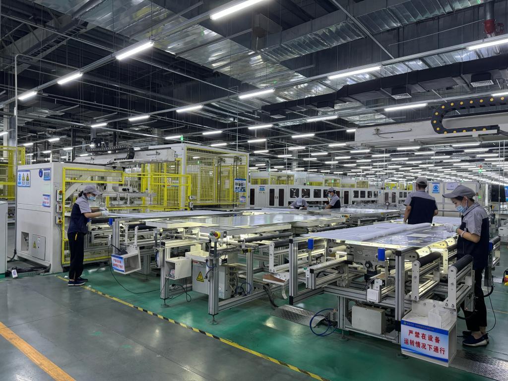7月31日,工人在山西華儲光電有限公司新建的光伏產(chǎn)品制造車間忙碌。新華社記者 王學濤 攝