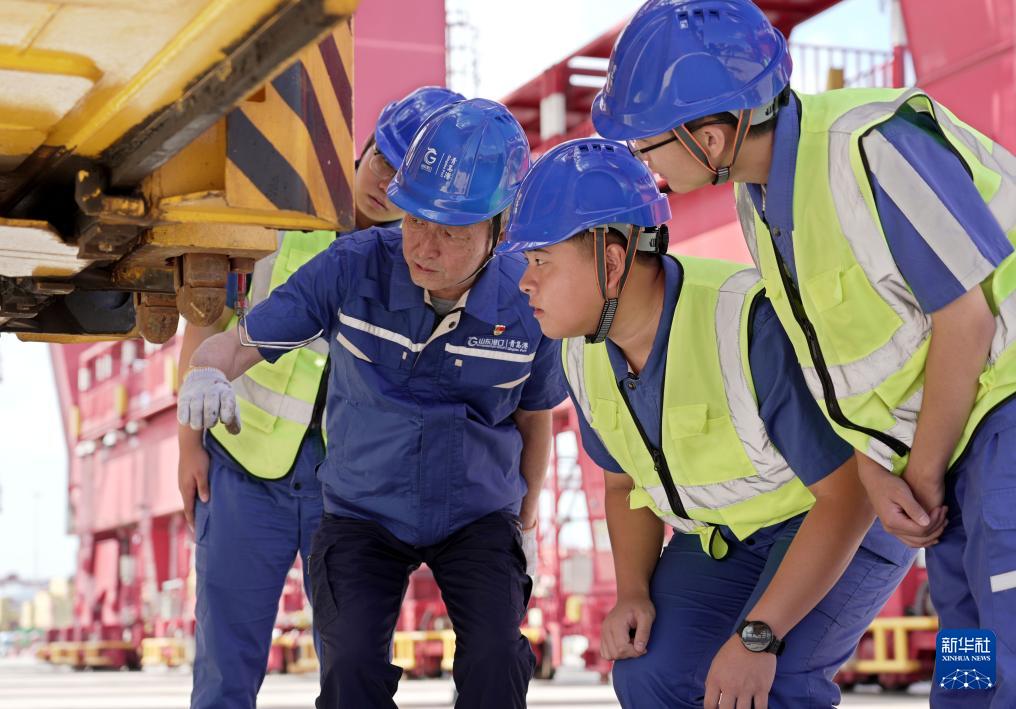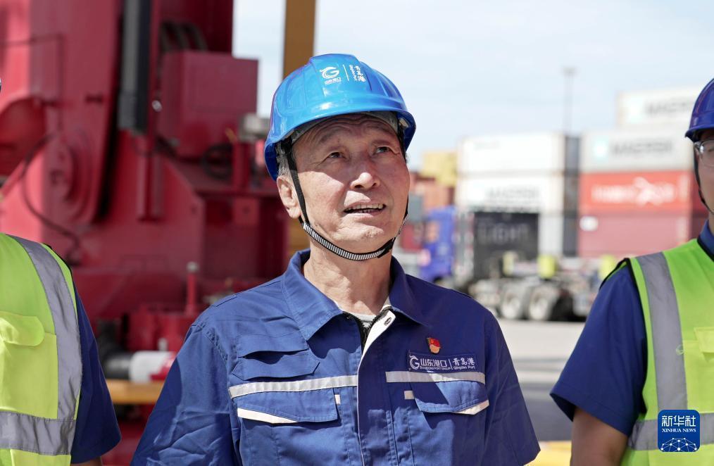 許振超在山東港口青島港集裝箱碼頭調(diào)研(9月2日攝)。新華社發(fā)(閆軍攝)