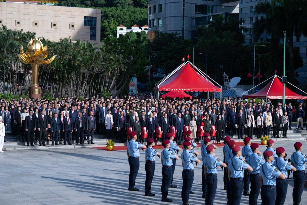 2024年10月1日,澳門特別行政區(qū)政府在金蓮花廣場隆重舉行升旗儀式,慶祝中華人民共和國成立75周年。新華社記者 張金加 攝