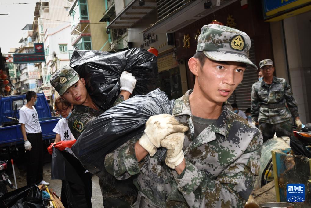 駐澳門部隊(duì)官兵參加“天鴿”臺風(fēng)救援活動(2017年8月25日攝)。新華社發(fā)(葉華敏 攝)