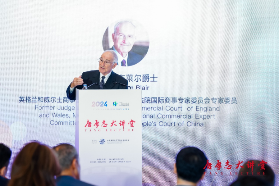 (英格蘭和威爾士商事法庭前庭長、大法官,中國最高人民法院國際商事專家委員會(huì)委員威廉·布萊爾爵士作主旨演講)