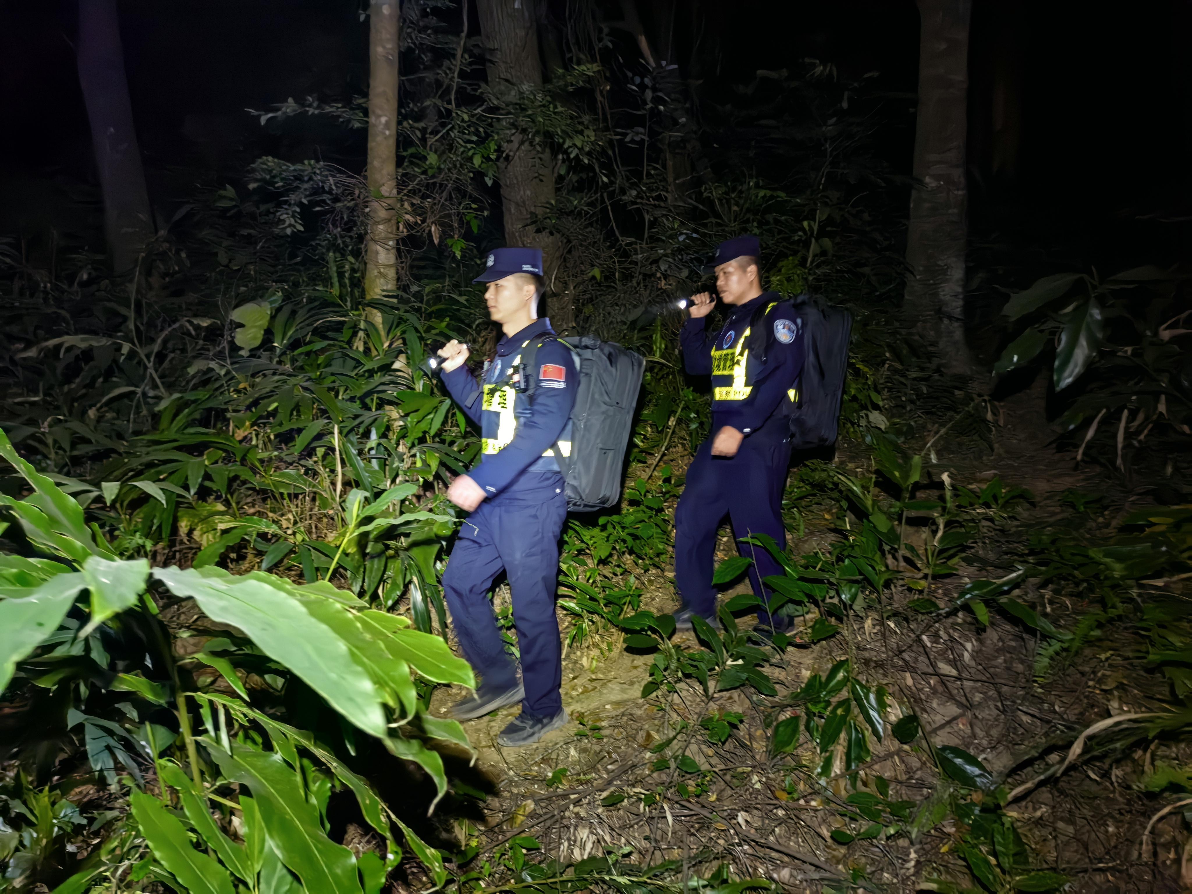 去年12月11日深夜,大青山警務(wù)室獲悉一條重要工作信息,一伙偷渡分子企圖從大青山附近偷渡出境。傅彬和同事莫璧成立即在重要路段設(shè)卡攔截,雖然發(fā)現(xiàn)目標(biāo)車輛但車內(nèi)并無其他人員。民警根據(jù)工作經(jīng)驗(yàn)判斷,該車可能已讓可疑人員下車離開。隨即,莫璧成立即聯(lián)系護(hù)邊員、網(wǎng)格員等群眾力量對(duì)附近區(qū)域進(jìn)行搜索。