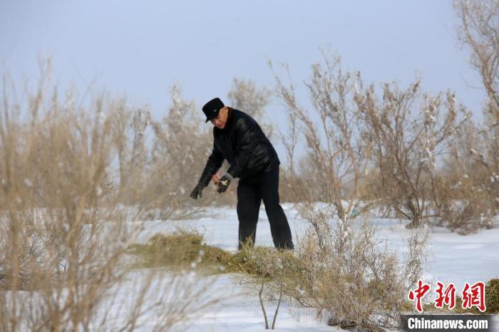 近日,護(hù)林員王偉踏著厚厚的積雪,與同事們行走在公益林腹地,為沙漠中的野生動(dòng)物投放草料。