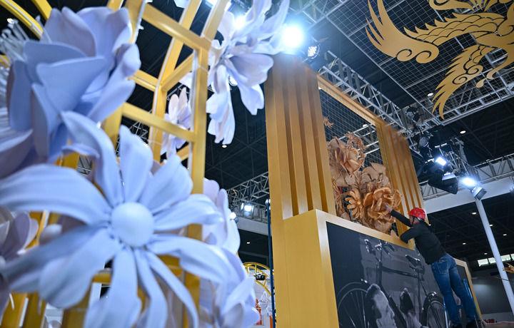 4月10日,展商在消博會(huì)主場(chǎng)館布展。 新華社記者 郭程 攝