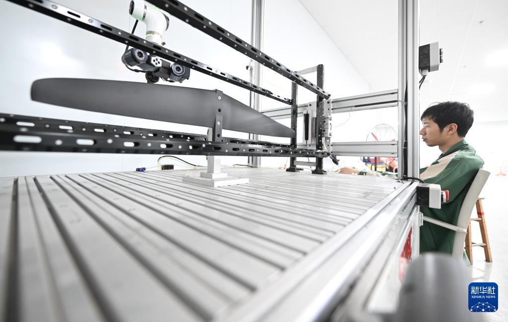 4月24日,在速力復合材料有限公司的生產(chǎn)車間內(nèi),工人在檢測生產(chǎn)的水翼產(chǎn)品。2024年,速力復材成為巴黎奧運會新增的風帆水翼賽事唯一指定生產(chǎn)商。